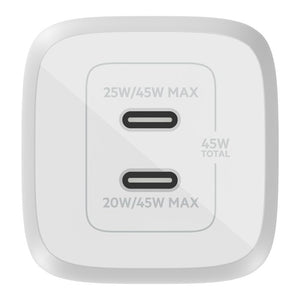 Charge your MacBook or fast charge an iPhone at the same time with our powerful, ultra-compact 45W dual USB-C wall charger. It includes GaN, USB-C PD 3.0 and PPS charging technologies, delivering a fast and safe charge.