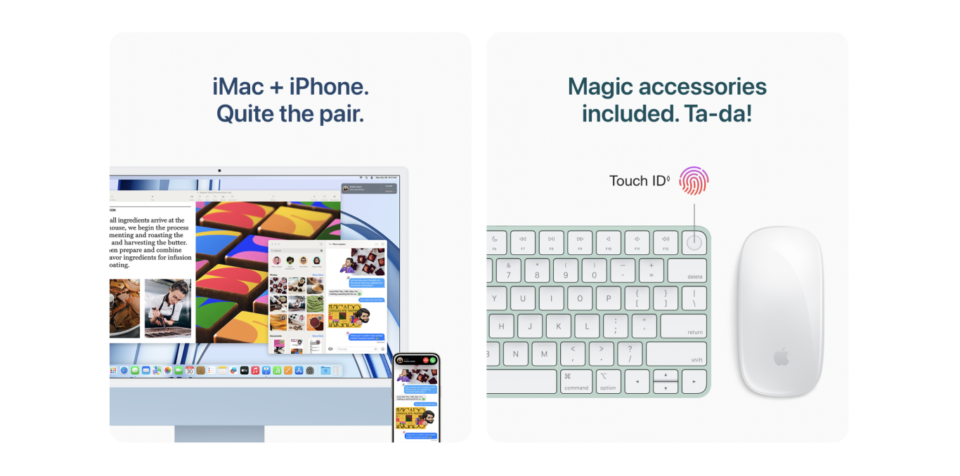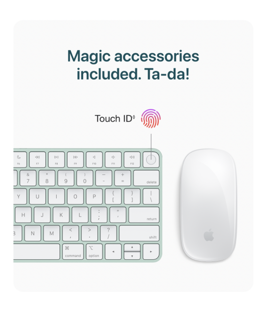 Touch ID: Magic Keyboard with Touch ID is included with iMac systems with 10‑core GPU and is available as an option on systems with 8‑core GPU.