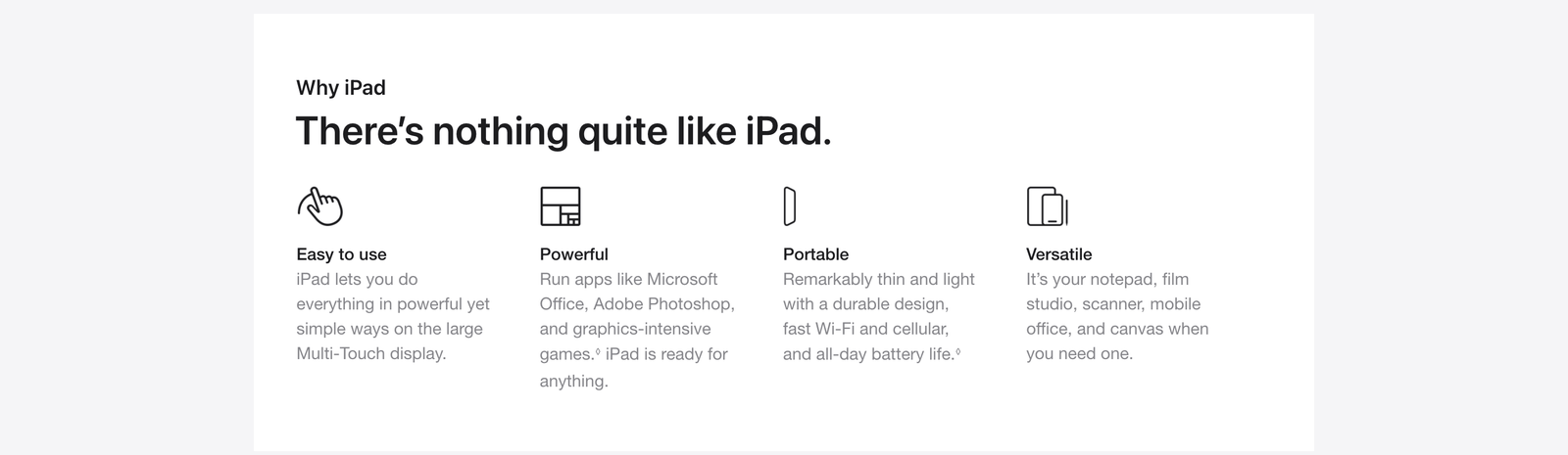 Power and Battery: Battery life varies by use and configuration. See apple.com/batteries for more information.