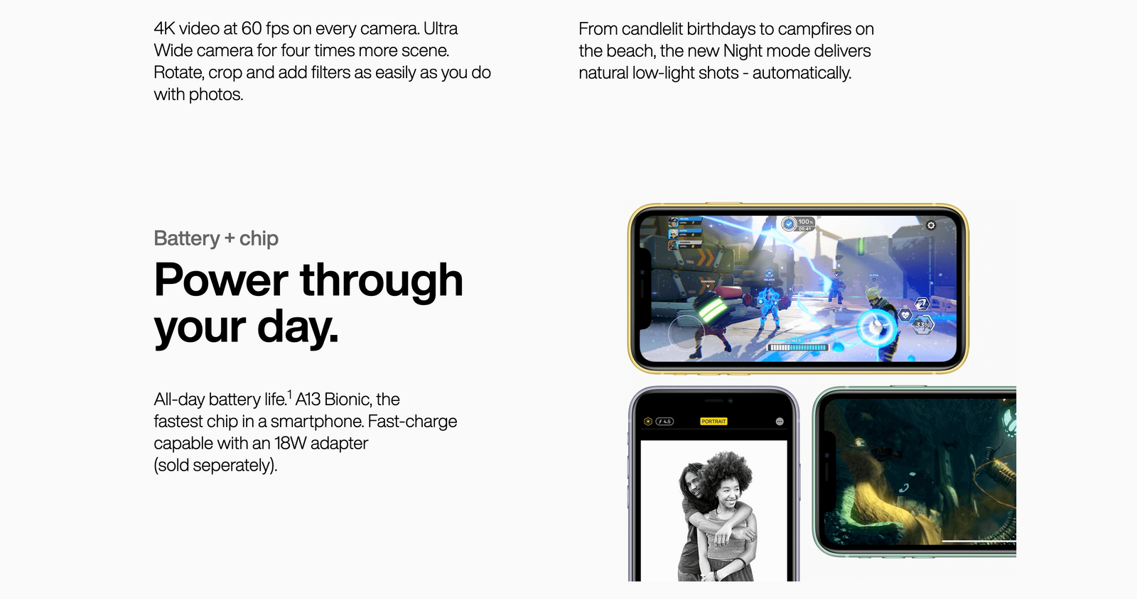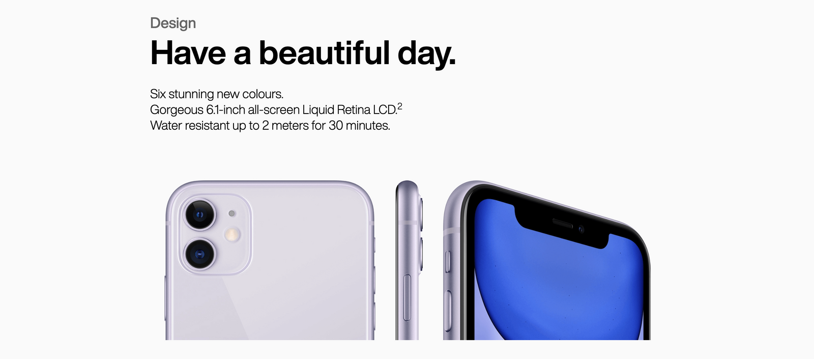 Battery life varies by use and configuration. See apple.com/batteries for more information.The iPhone 11 display has rounded corners that follow a beautiful curved design, and these corners are within a standard rectangle. When measured as a standard rectangular shape, the screen is 6.06 inches diagonally. Actual viewable area is less.
