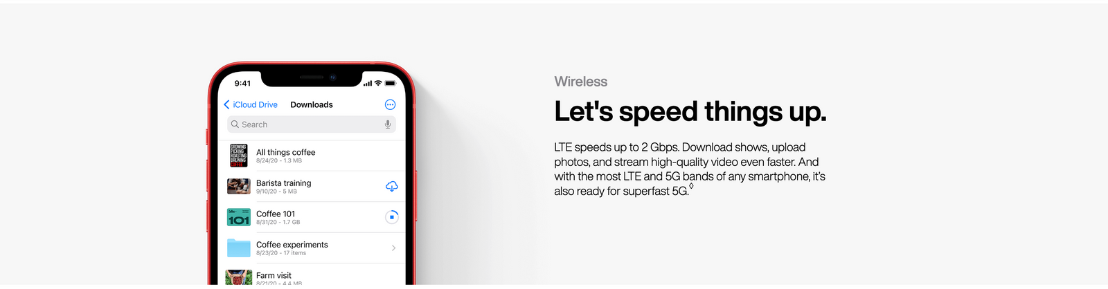 Data plan required. 5G and LTE are available in select markets and through select carriers. Speeds are based on theoretical throughput and vary based on site conditions and carrier. For details on 5G and LTE support, contact your carrier and see apple.com/iphone/cellular.