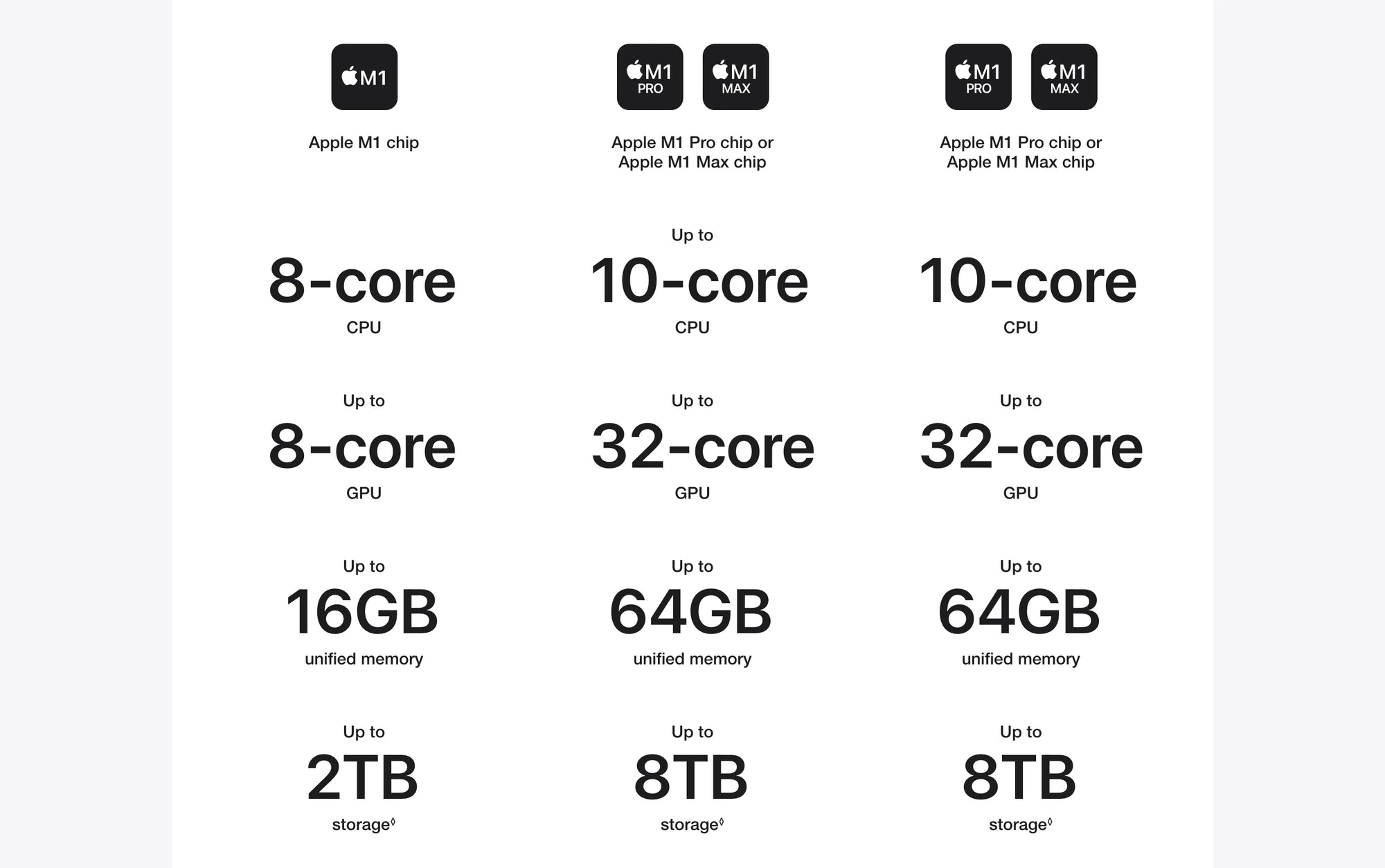 Testing conducted by Apple in September 2021 using preproduction 16-inch MacBook Pro systems with Apple M1 Max, 10-core CPU, 32-core GPU, 64GB of RAM, and 8TB SSD. Prerelease Final Cut Pro 10.6 tested using a 1-minute picture-in-picture project with 7 streams of Apple ProRes 422 video at 8192x4320 resolution and 30 frames per second. Performance tests are conducted using specific computer systems and reflect the approximate performance of MacBook Pro.