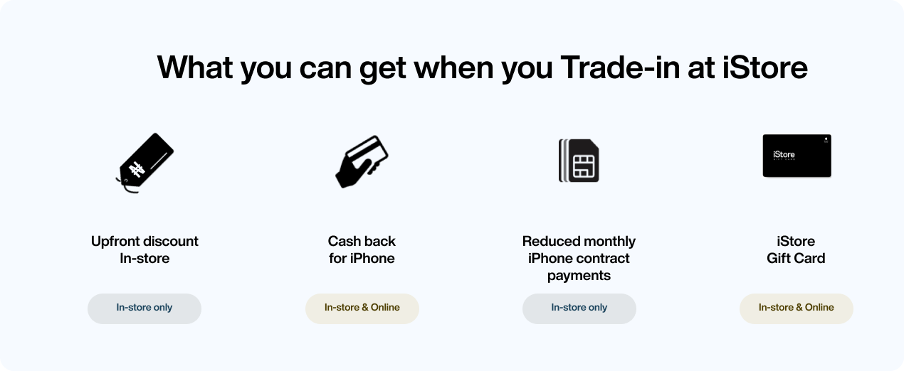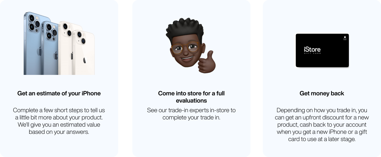 The final trade in value may be different to the estimated trade in value, as this is subject to a final visual-grading assessment and functional testing in-store or at our trade in centre.